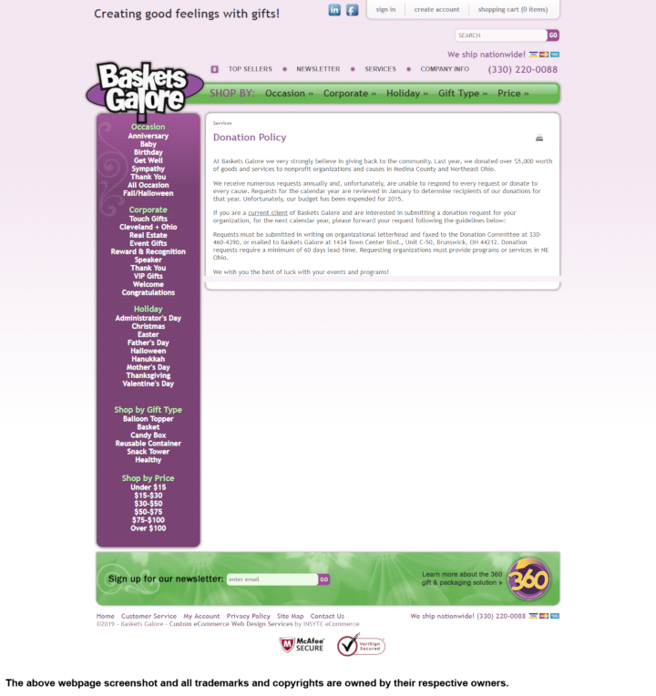 Company Information: Baskets Galore trademarks and copyrights are owned by: Baskets Galore