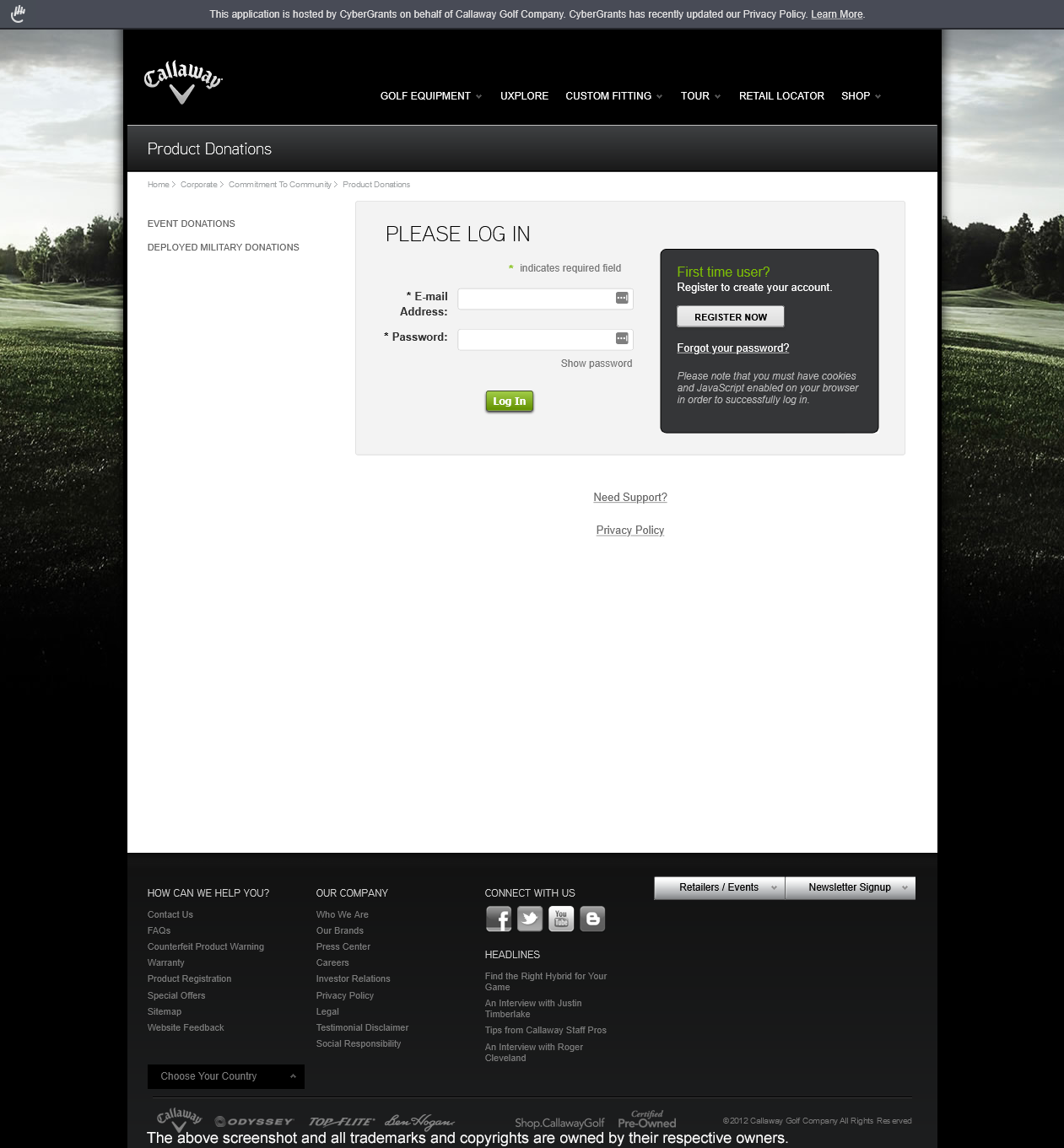 Callaway Golf considers product donations for U.S. nonprofits that are either improving the lives of at-risk youth, providing access to health services for non/under insured individuals and families, or providing support to wounded warrior programs. However, they only consider local chapters of national organizations to where Callaway Golf has an office.