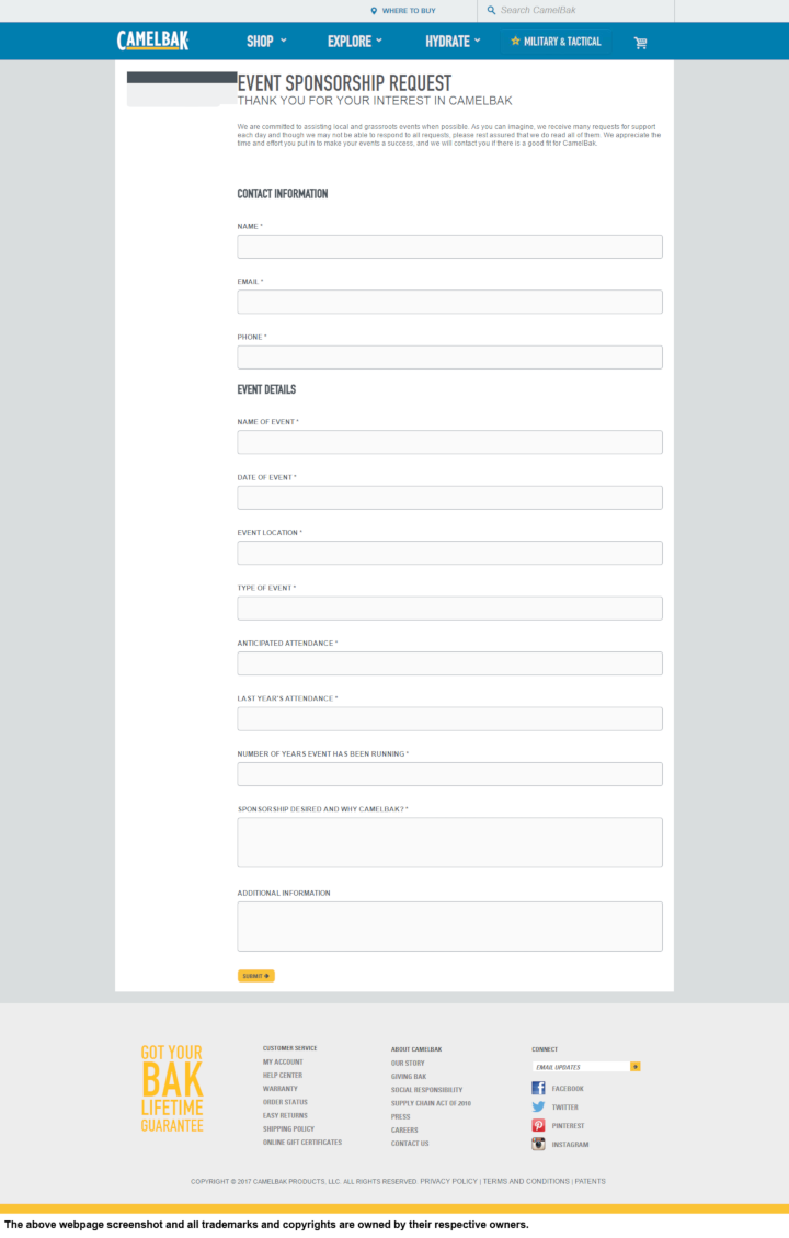 As a way of giving back, CamelBak is committed to assisting local and grassroots events when possible. They pay close attention not only to what they make— but how they make it, for whom they make it and the way it impacts people’s lives and the environment.