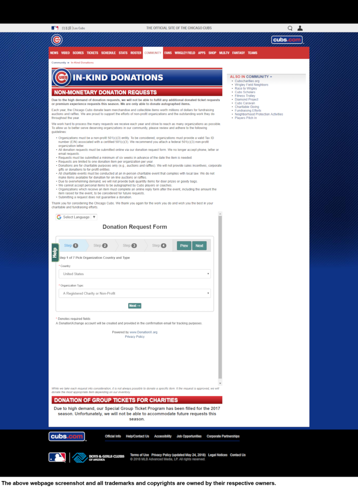 To request a donation from the Chicago Cubs, nonprofit organizations should follow these guidelines based on the information provided on their webpage:
