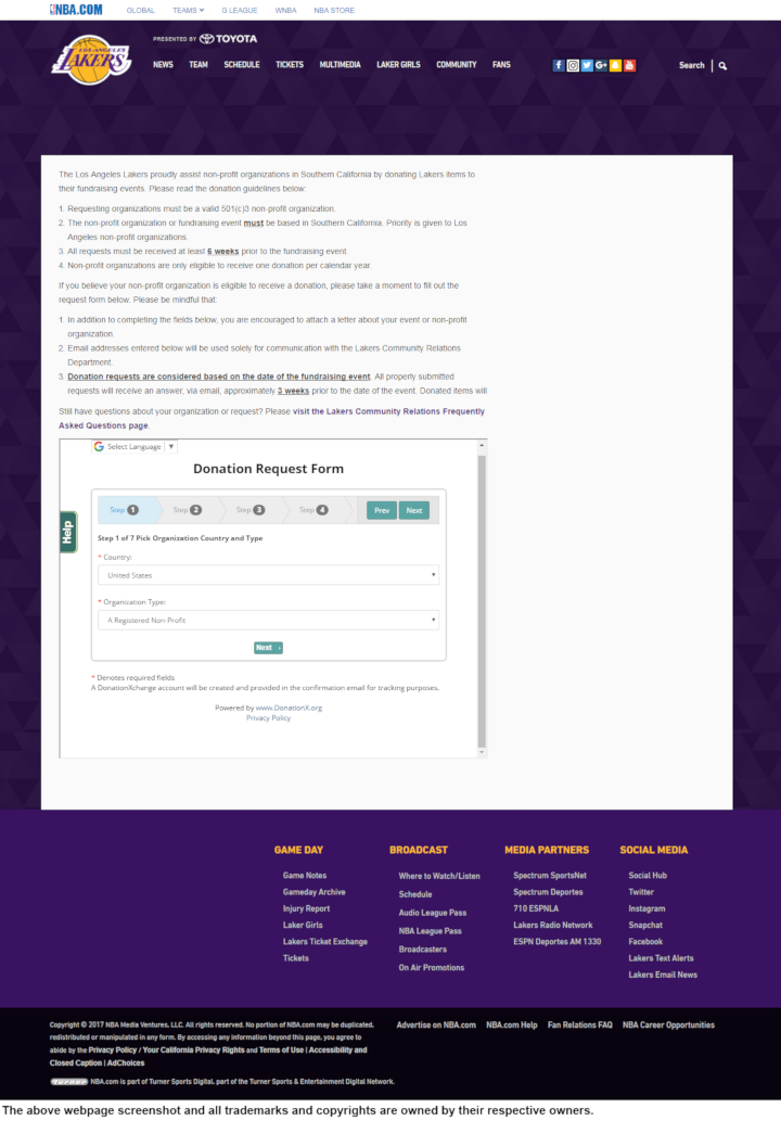 The Lakers are committed to making a positive impact in the community and are eager to consider your request.