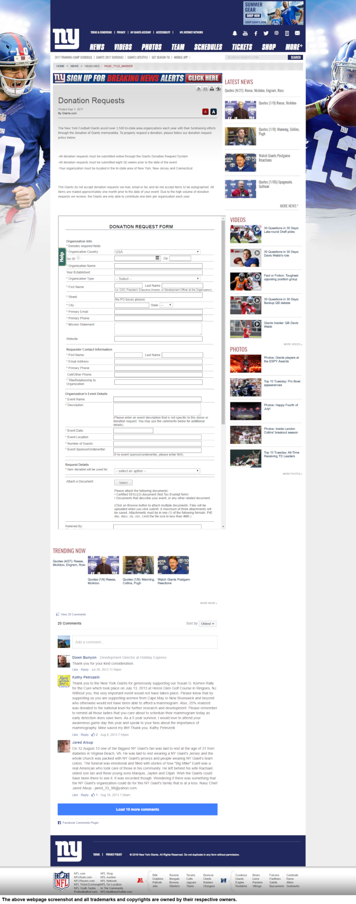 -All donation requests must be submitted online through the Giants Donation Request System