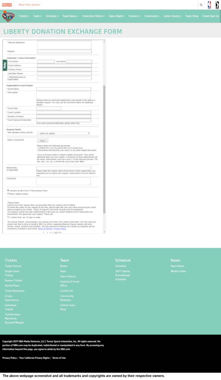 Company Information: New York Liberty (Memorabilia) trademarks and copyrights are owned by: