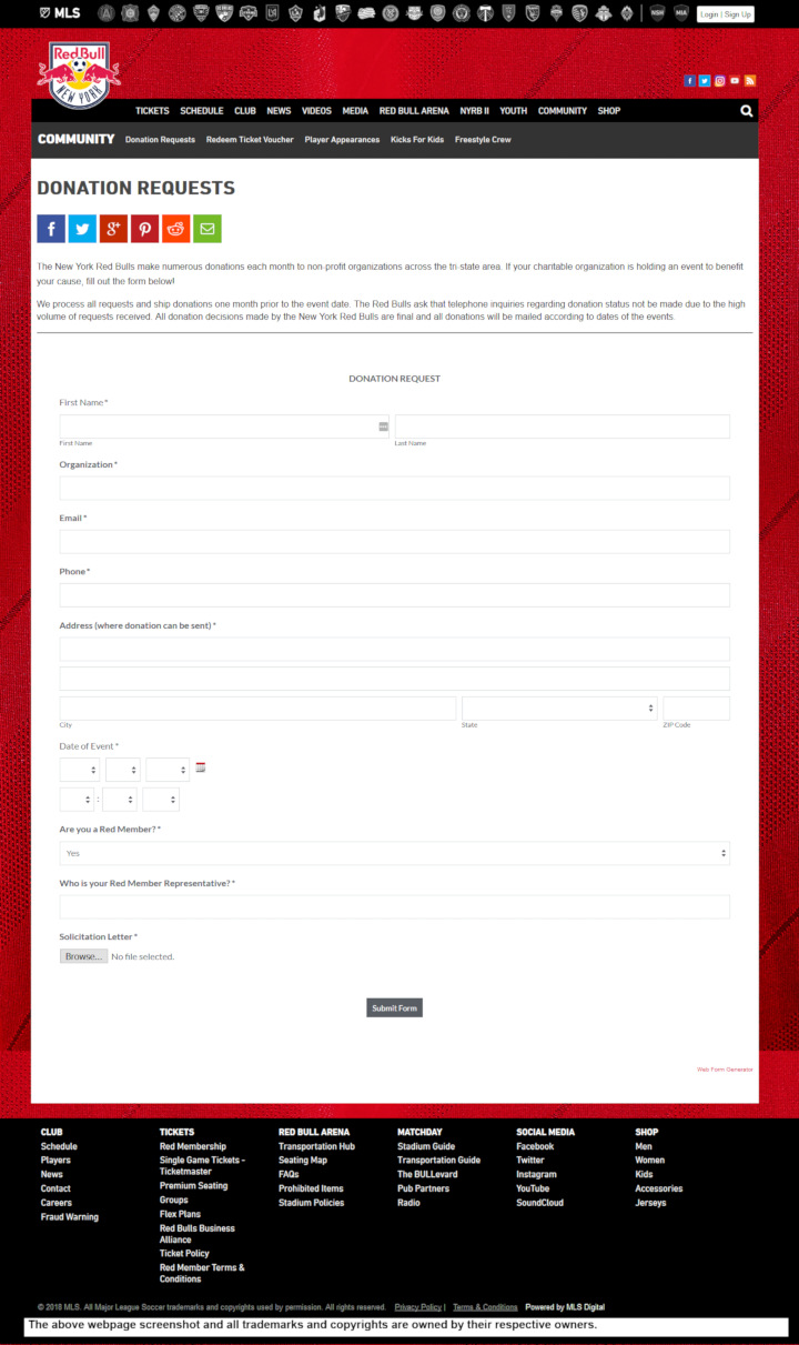 The New York Red Bulls take pride in supporting different non-profit organizations and charitable across the tri-state area. They show their support through in-kind donation.