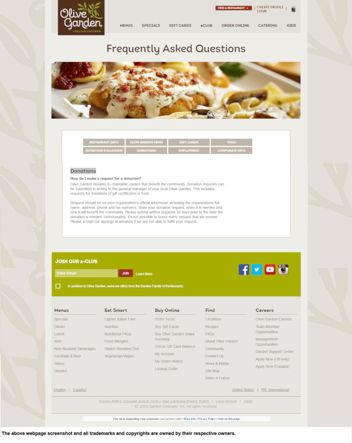 About Olive Garden Product Donations