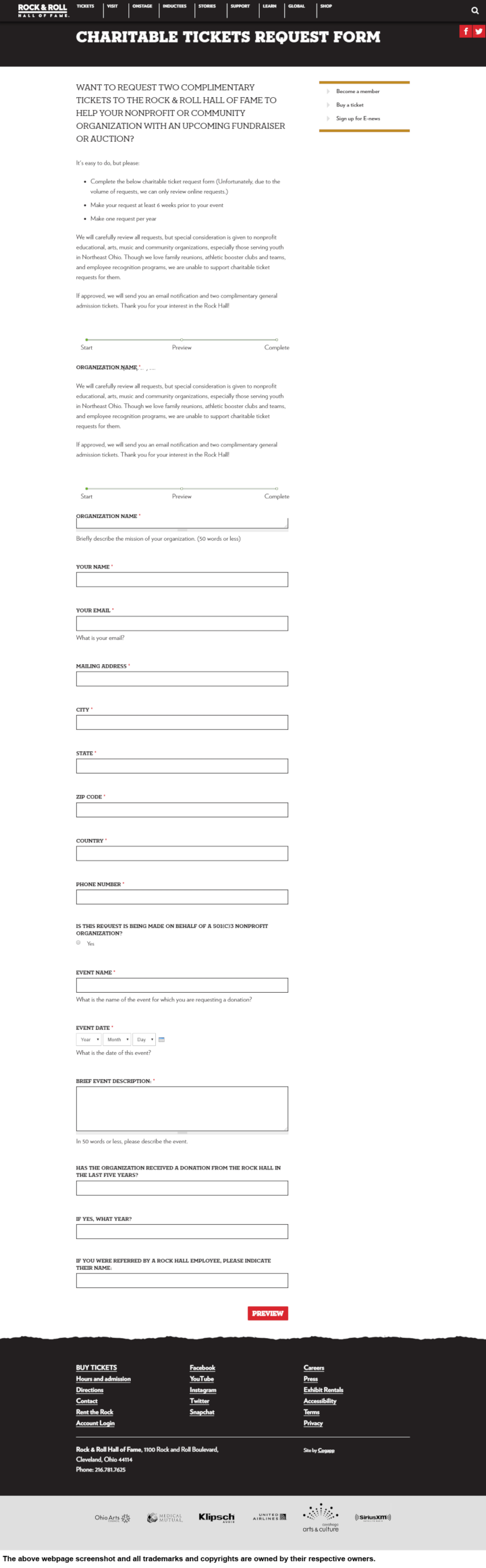Rock & Roll Hall of Fame Museum will be happy to help your organization raise some funds through donations of two general admission tickets.