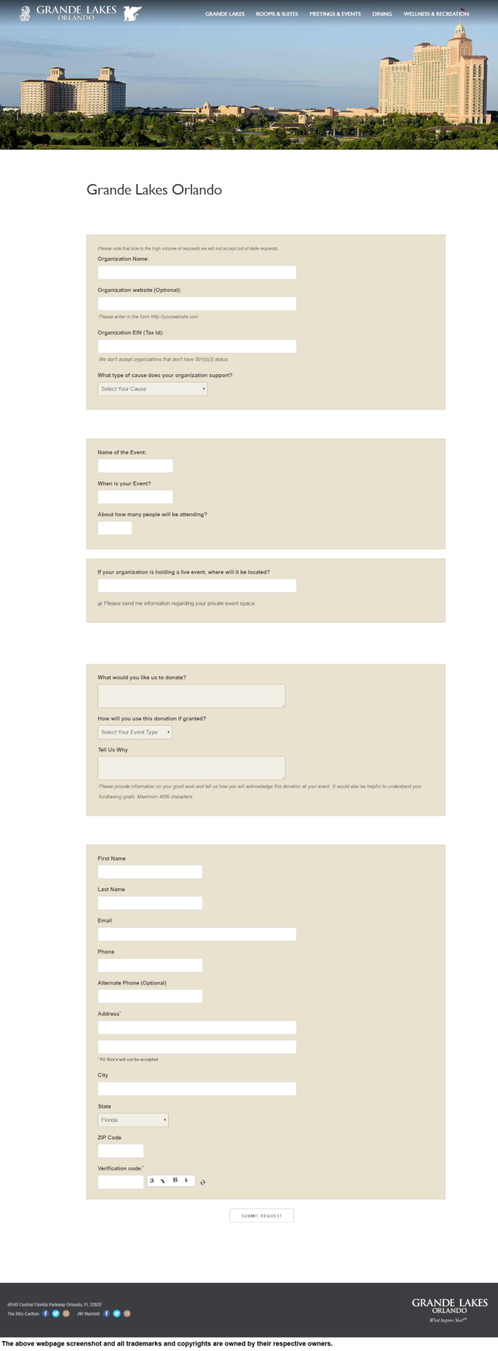 The Ritz-Carlton – Grande Lakes is able to donate grants, sponsorship, and in-kind donations. Organizations will be able to raise funds with this luxury hotel’s donations.