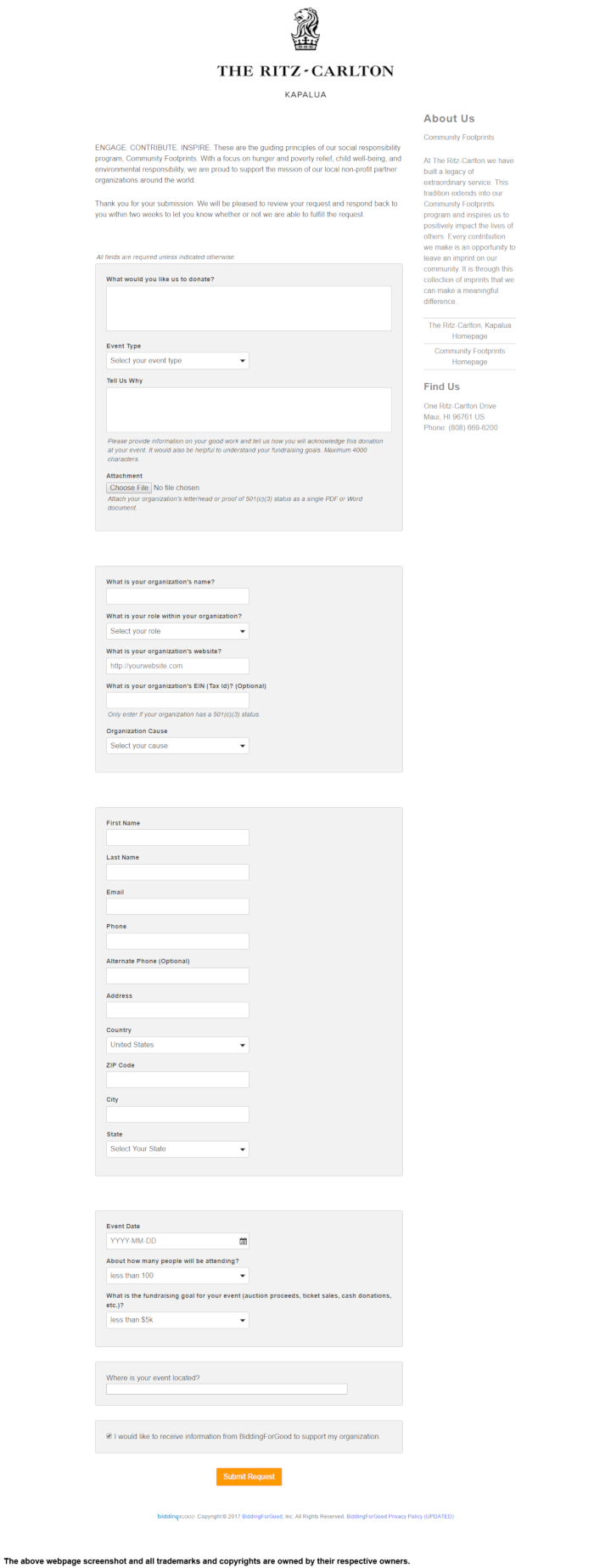 The Ritz-Carlton is able to donate grants, sponsorship, and in-kind donations. Organizations will be able to raise funds with luxury hotels.