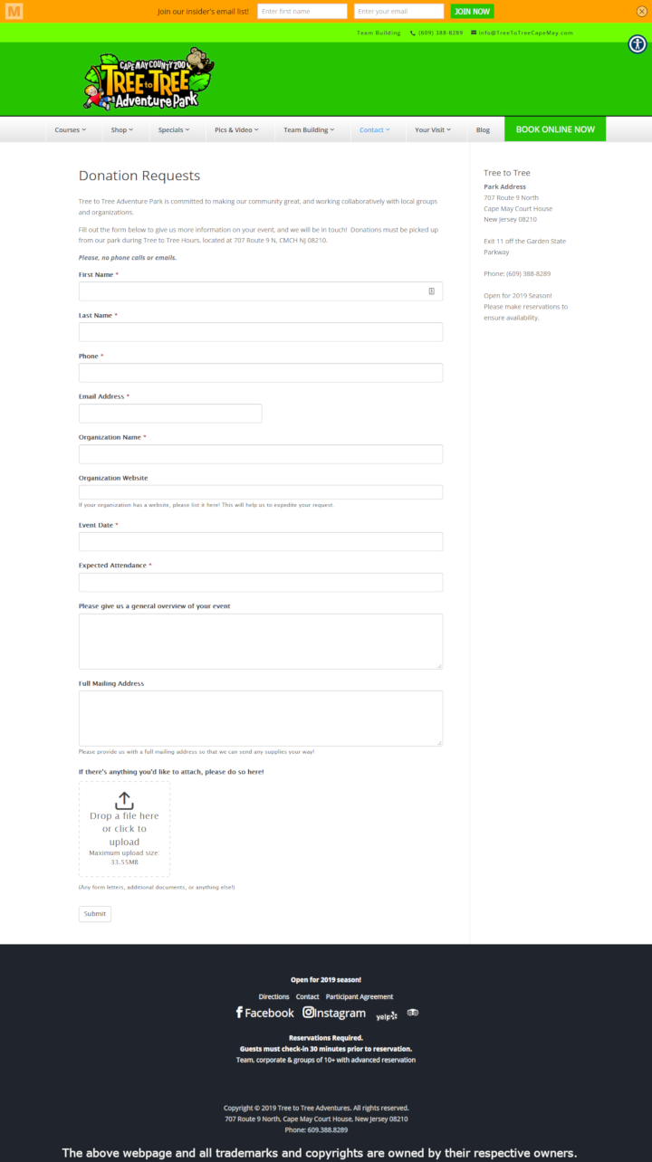 Tree To Tree Adventure Park (Cape May) donates to local organizations. Kids to adults and everyone between are welcome to join in the Aerial Adventure fun!
