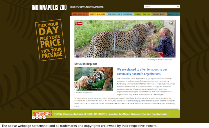 Read more about how your organization can qualify for and use a donation from Indianapolis Zoo, or click here to find and solicit more donors like them!