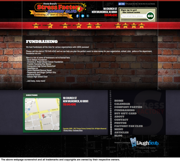 Company Information: Stress Factory Comedy Club trademarks and copyrights are owned by: